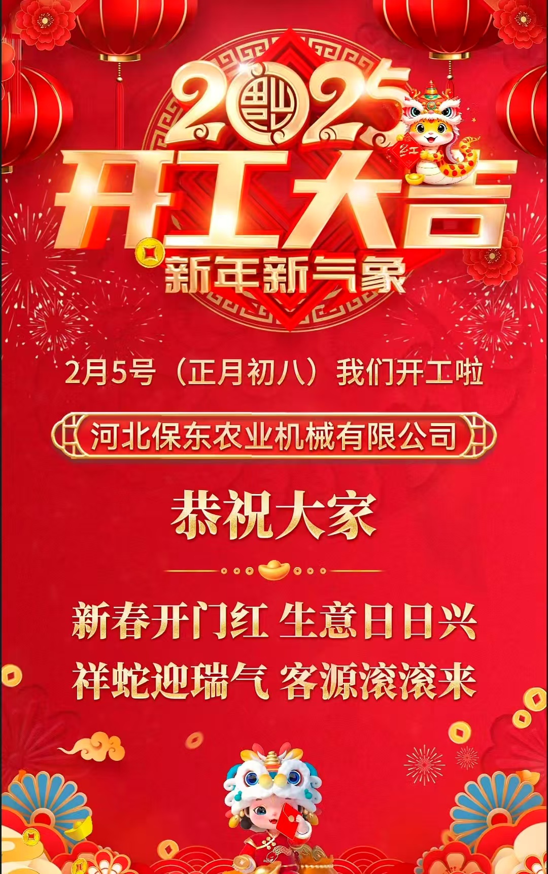 河北保東農業機械有限公司成立于2006年,坐落于“中國皮都”河北省辛集市,地理位置優越,來往交通便利。于2018年斥資3000萬在辛集市省級技術開發區興建新廠,建筑面積占地兩萬平方,并正式啟用。同年被定為“2018辛集重點項目”,設有一套完整的裝配流水線,并規范各項管理制度,從源頭上保證了產品的質量、交貨期和故障率。